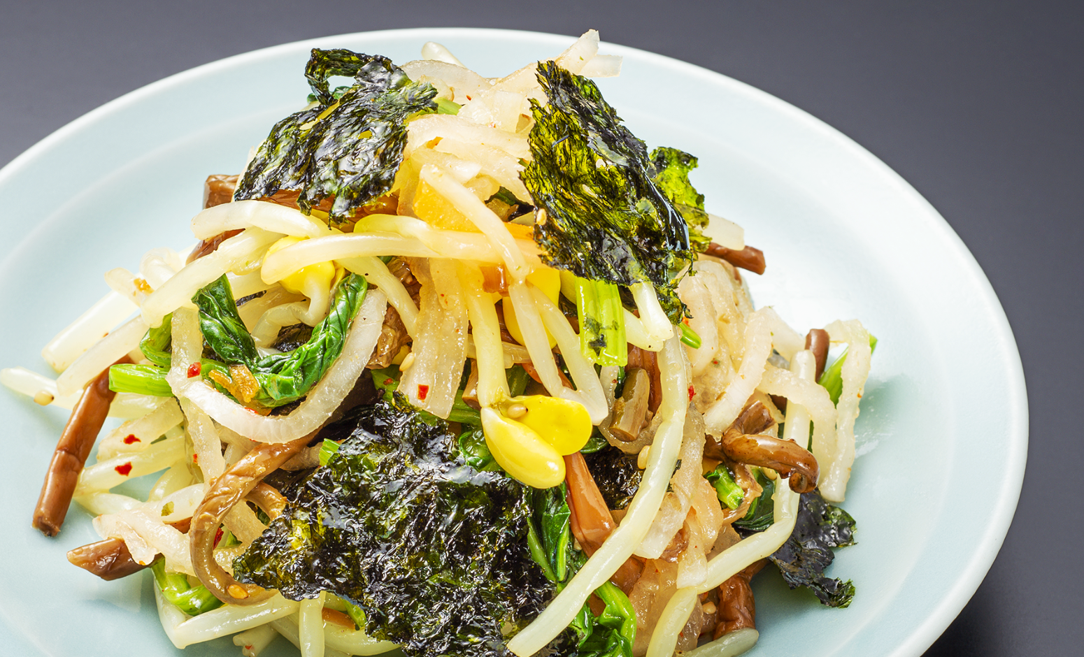 ぜったい美味しい!ぜったい食べて欲しい!そんな思いを込めて作ったこのメニューも今は「焼肉ここから」の超人気メニュー。もやしナムル、センナムル、ゼンマイ、ほうれん草4種類のナムルを混ぜ合わせ韓国のりをトッピングしております。ナムルはそれぞれ別々に食べるより一緒に食べた方がぜったい美味しい!是非お試し下さい。
